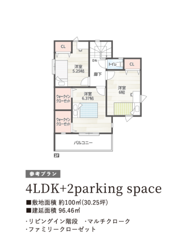 1階と2階の両方にウォークインクローゼットを配置する「ダブルWIC」。