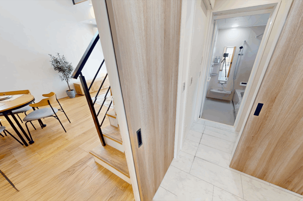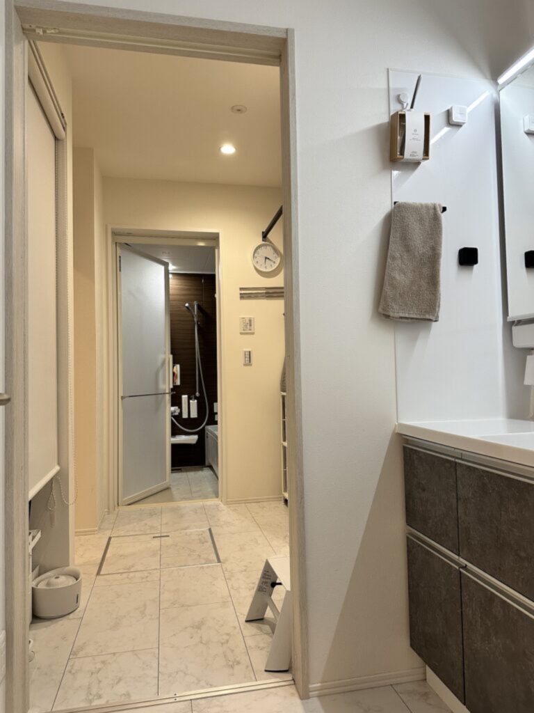 来客が手を洗う際などに、生活感が出やすい脱衣所を隠せます。
