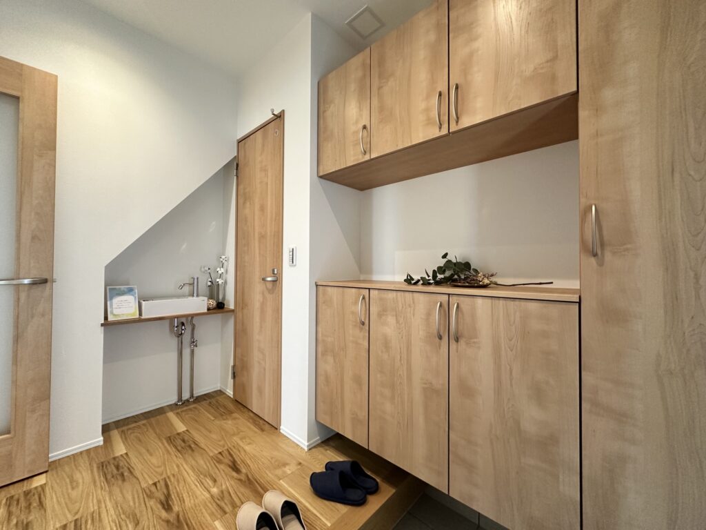 敷地の広さなどとの兼ね合いで、メインの洗面所と脱衣所を分けるのが難しい場合は、玄関やトイレの近くにサブ洗面を設置するのもオススメ。