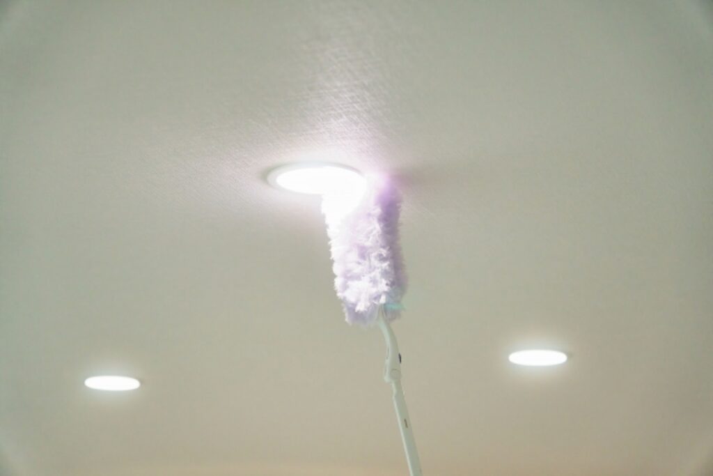 天井に埋め込まれているため、ホコリが溜まりにくく、こまめな清掃が不要です。また照明器具の形状がシンプルで、清掃自体の手間も軽減できます。