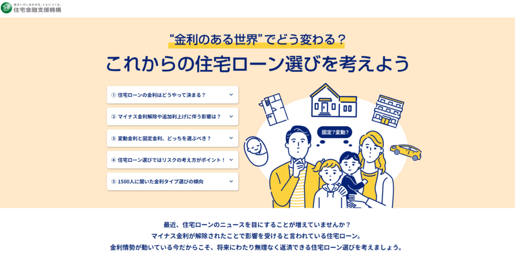 そこで、ご紹介したいのが住宅金融支援機構が新たに開設した「“金利のある世界”でどう変わる? これからの住宅ローン選びを考えよう」です。
