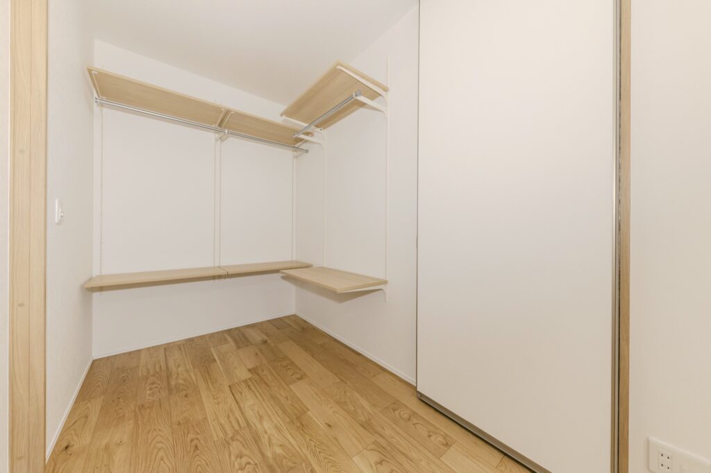 どこに何を入れるのか分かりやすいので、「シンプルすぎるウォークインクローゼットは使いにくい」「整理整頓が苦手」という方にはオススメです。また、あらかじめ収納物が決まっている場合は、サイズや量に合わせて収納ユニットを組んだり、造作収納を作ることもできます。