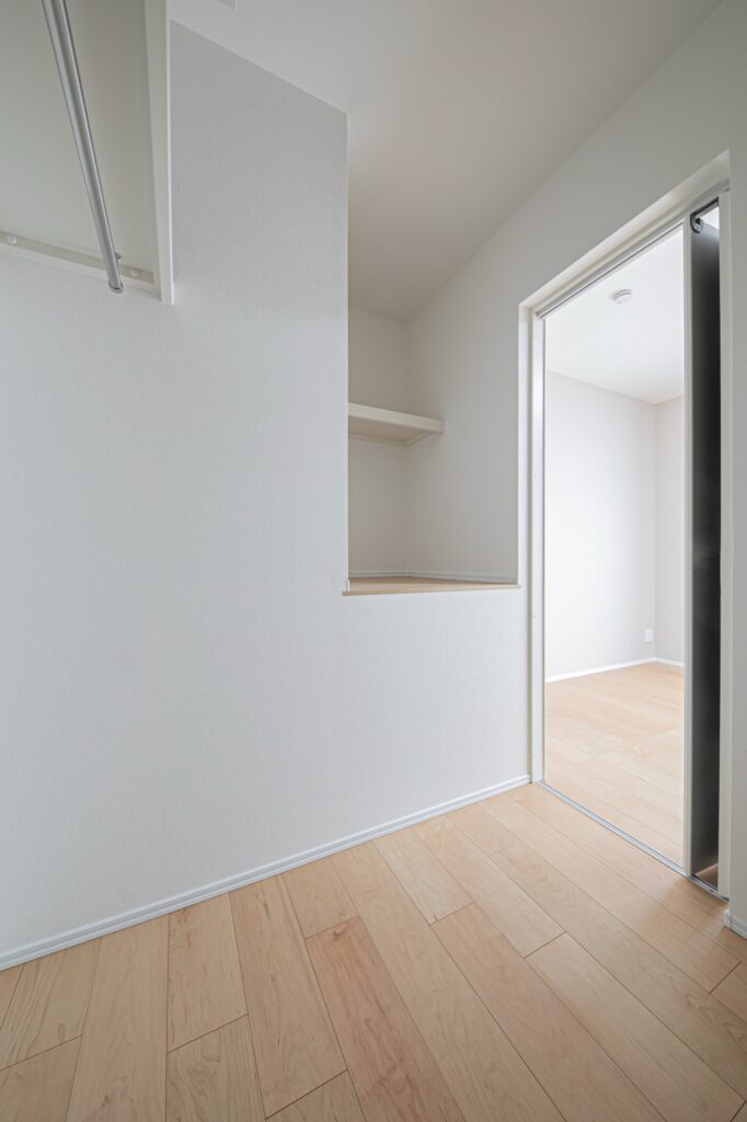ハンガーパイプや棚を一切設けないパターンです。収納内の組み換えなどを頻繁に行いたい方にはぴったり。照明や窓があるウォークインクローゼットなら、ミニ書斎などとして活用することもできます。一方で、どこに何を入れるかガイドが一切ないので、片付けが苦手な方には向きません。