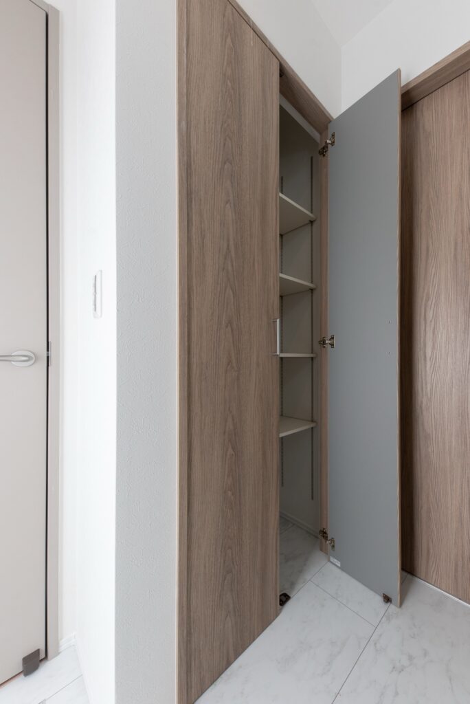 扉やレイアウトを工夫すれば、比較的狭い場所でも収納を設けることができます。