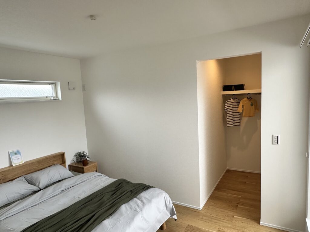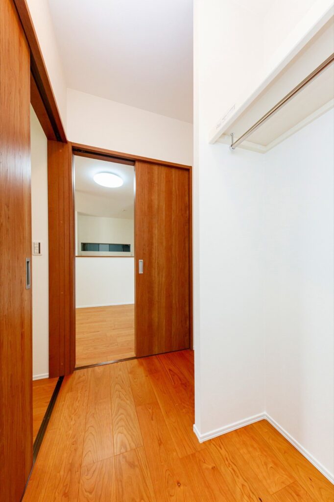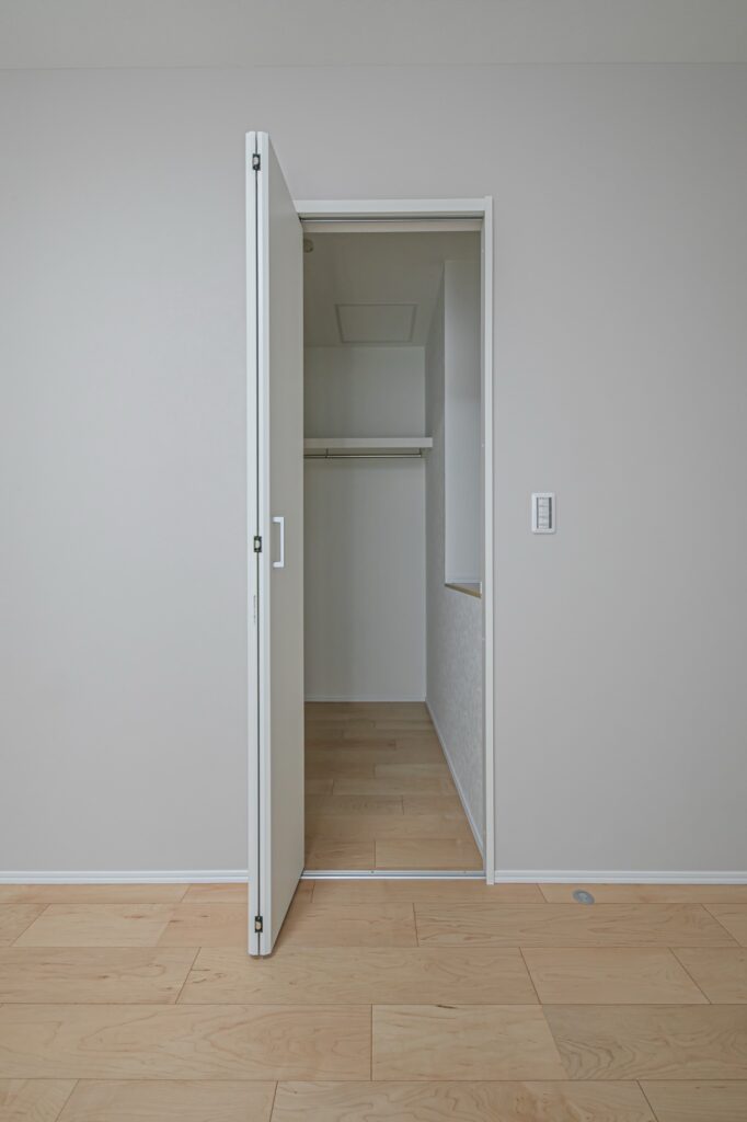 近年人気なのが、扉のないオープンタイプの収納。来客時、目に付くことがない寝室や2階廊下のクローゼット・ウォークインクローゼットは、あえて扉を付けないという方が増えています。