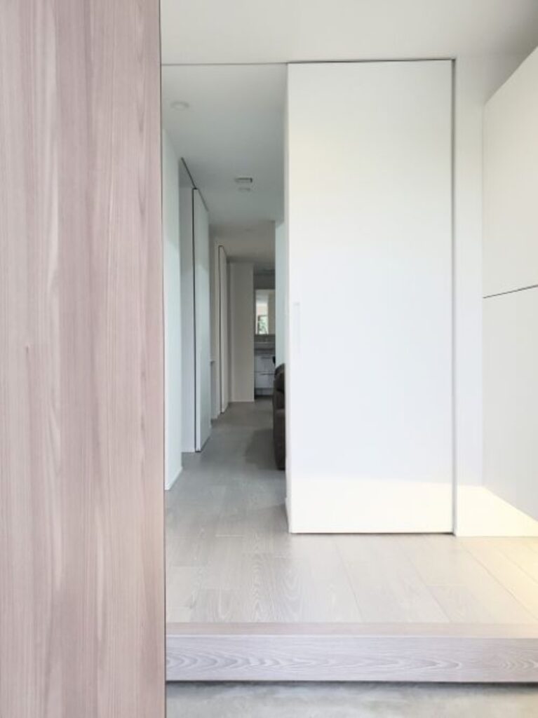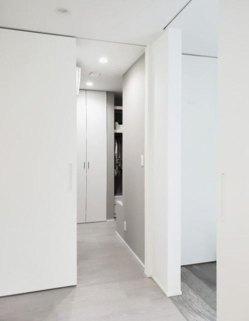 ハイドアを採用することで、すっきり開放感があり、洗練された空間に仕上がると大人気。デザイン性が高いことから、玄関まわりやリビングなど、ゲストの目につきやすい場所には、とくに多く採用されています。