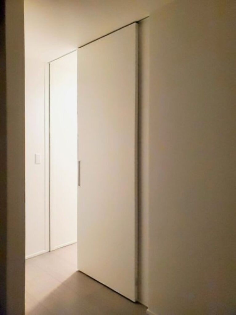 ドアと天井の間の垂れ壁が目立たず、すっきりとした印象に仕上がります。とくに天井までのハイドアは、垂れ壁なしの洗練された洗練された空間に。視覚的なノイズを減らせるため、インテリアが際立ちます。
