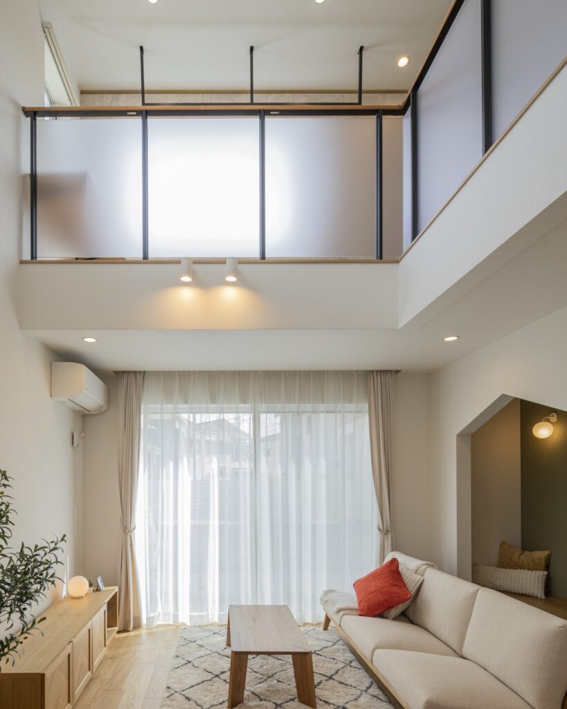 吹き抜けの手すり壁などをスケルトン素材にするのもオススメです。