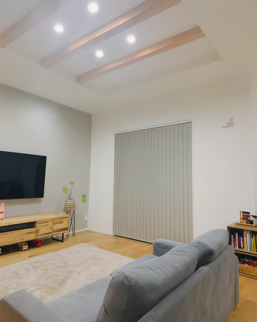 天井の中央部分を一段高くすることで、空間に立体的な奥行きが生まれます。高低差で天井高がより強調されるのも特徴。間接照明を仕込めば、光の陰影がより開放的な雰囲気を際立たせてくれます。