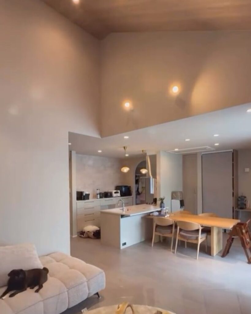屋根の傾斜をそのまま活かした高い天井は、空間のボリュームを大きく広げます。高低差がメリハリやリズムを生み、縦方向のゆとりが部屋全体を優雅でダイナミックな印象に仕上げてくれます。