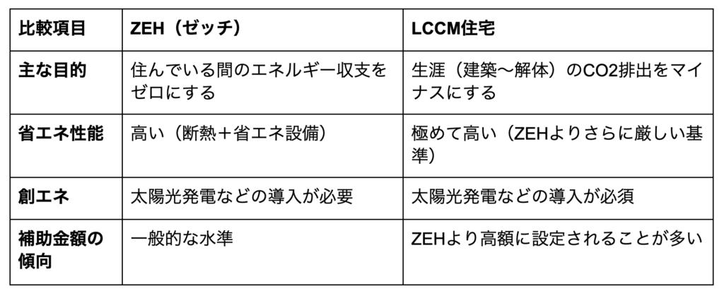 ■LCCM住宅とZEHの比較表