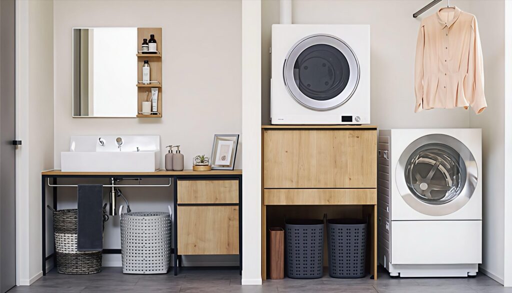 ランドリー機能と収納をコンパクトかつ機能的にまとめたい方には打ってつけ。