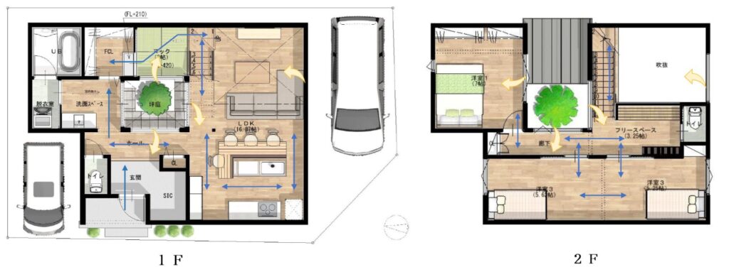 コンペで高評価を得たコンセプトはそのままに、細部をブラッシュアップして、さらに実用性を高め、暮らしやすさを追求。隅々までこだわり抜いた、より完成度の高いプランに仕上がっています。