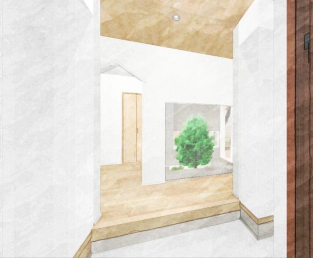 玄関ドアを開けた瞬間、視界に飛び込んでくる坪庭。内なる住まいの「顔」である坪庭を、LDKや水回り、ヌックなど、様々な場所から眺められるよう設計されています。