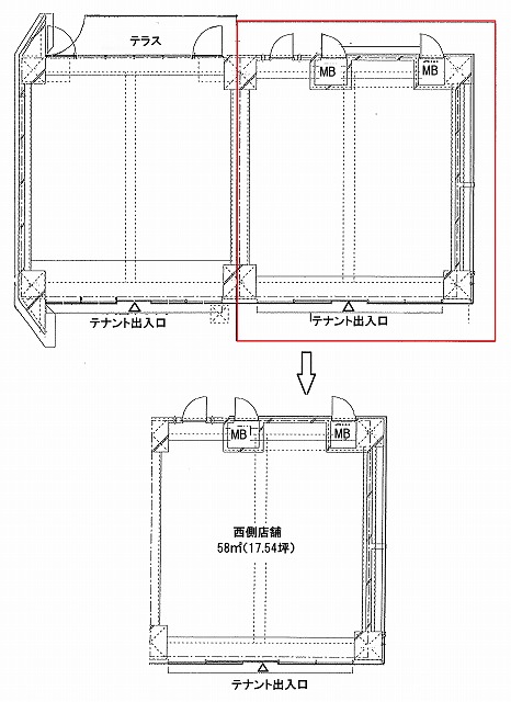 | 設備・条件 | スケルトン渡し・事務所・軽飲食可。 |